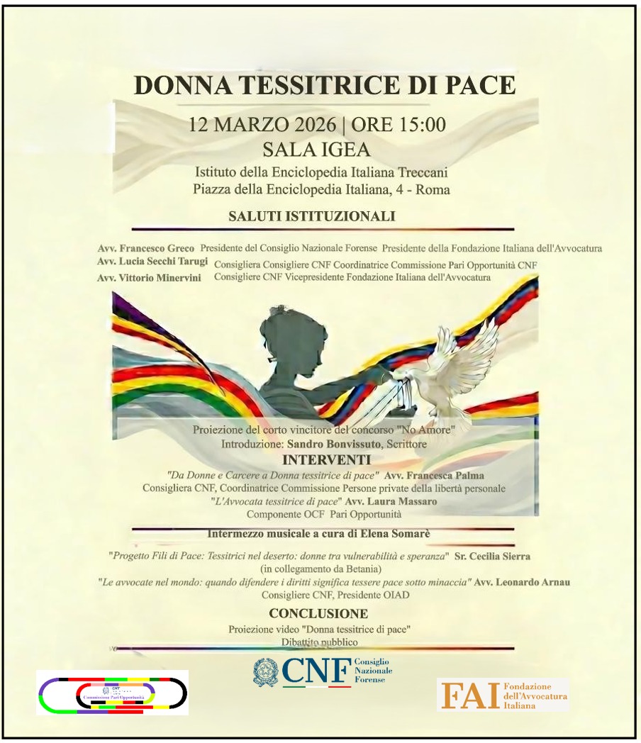 CNF: Evento “Donna tessitrice di pace” – Roma, 12 marzo 2026.
