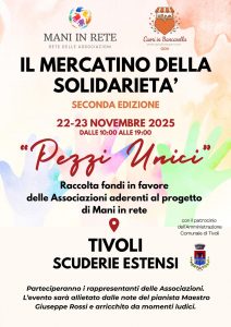 Un Mercatino della Solidarietà che si terrà in Tivoli presso le Scuderie Estensi nei giorni 22 e 23 Novembre pv .